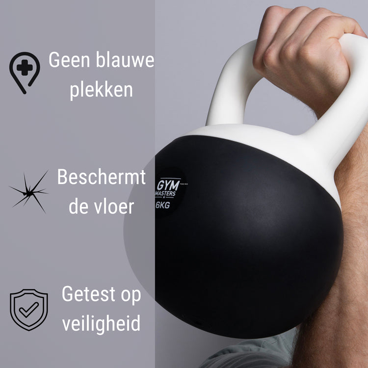 Zachte kettlebell van 10 kg van Gym Masters; veilig, comfortabel voor krachttraining, voorkomt krassen.