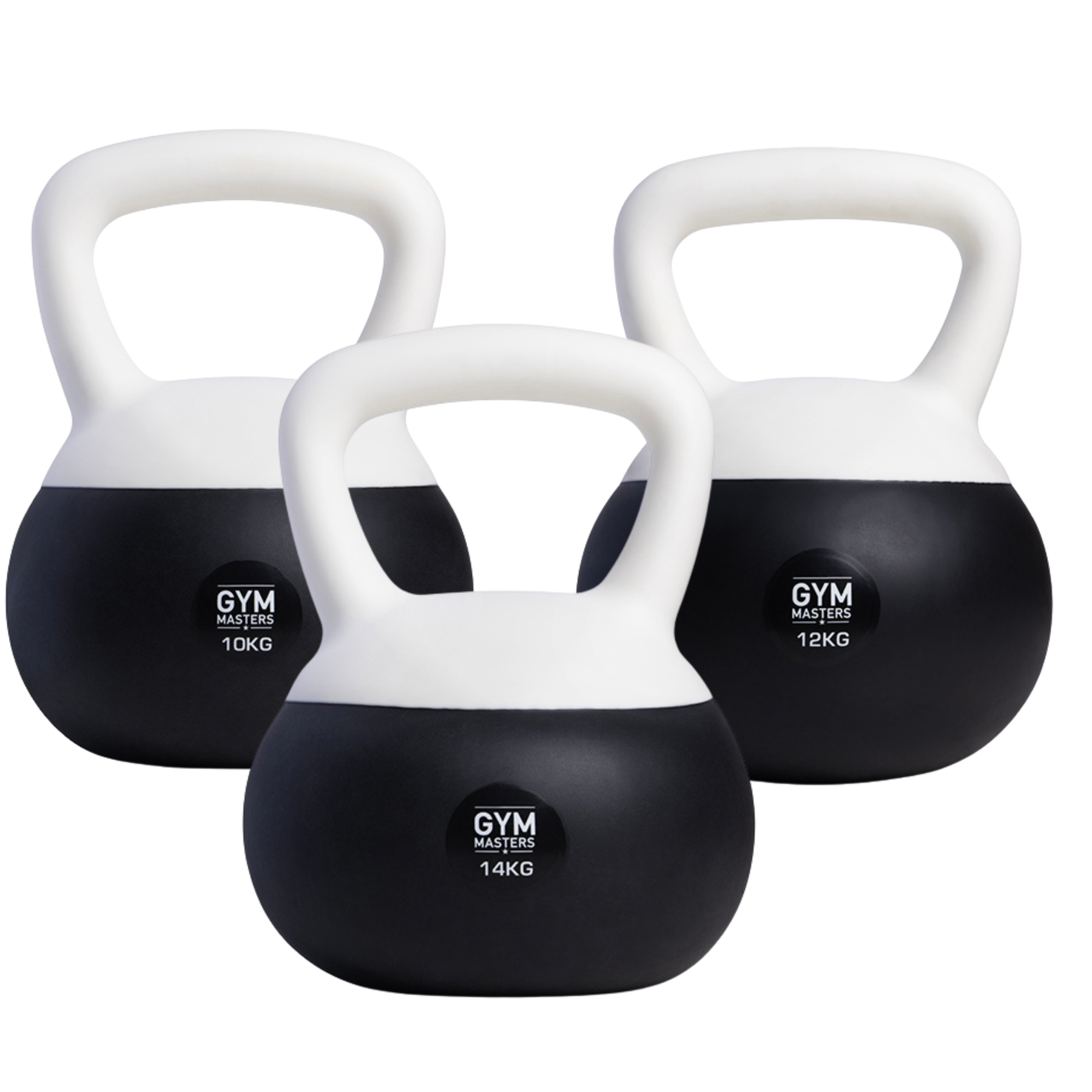 Zachte kettlebell set 3 stuks (10 kg & 12 kg & 14 kg) - Gym Masters kettlebell 10 kg met ergonomisch handvat.